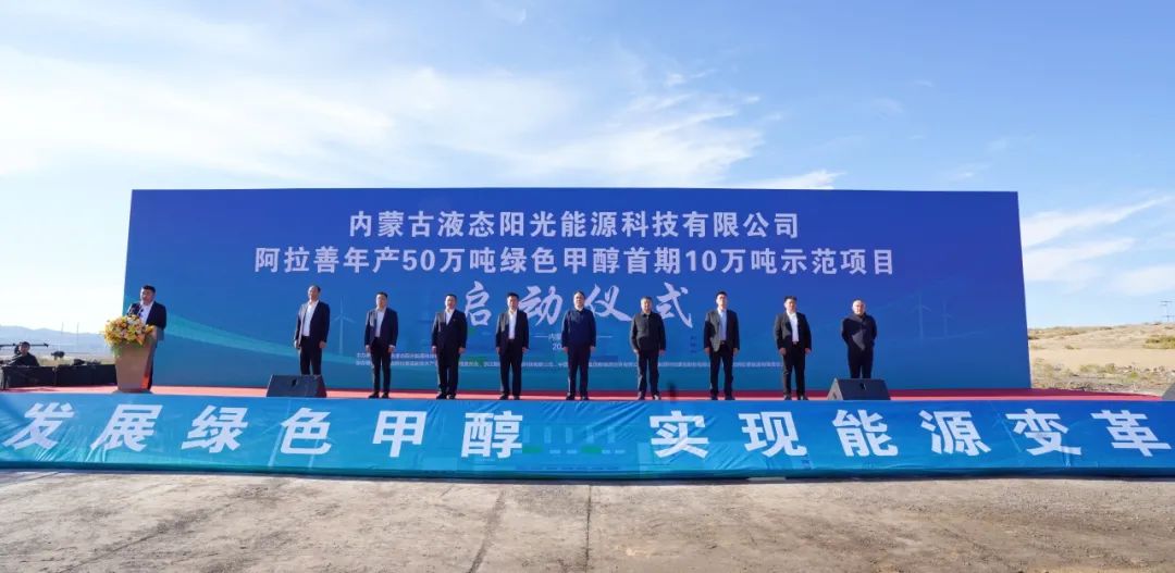 10月27日,阿拉善年产50万吨绿色甲醇首期10万吨示范项目正式启动,该项目是中国首个50万吨级电解水制氢耦合工业捕集的二氧化碳合成绿色甲醇项目。阿拉善盟委副书记、盟长白海林,盟行署党组成员、副盟长刘冲霄,远程新能源商用车集团首席科学家、醇氢生态公司总经理刘汉如,中国南水北调集团党委委员、副总经理黄金彪,运达股份副总经理魏敏,阿拉善高新区、示范区党工委书记柳仙德等领导出席活动。