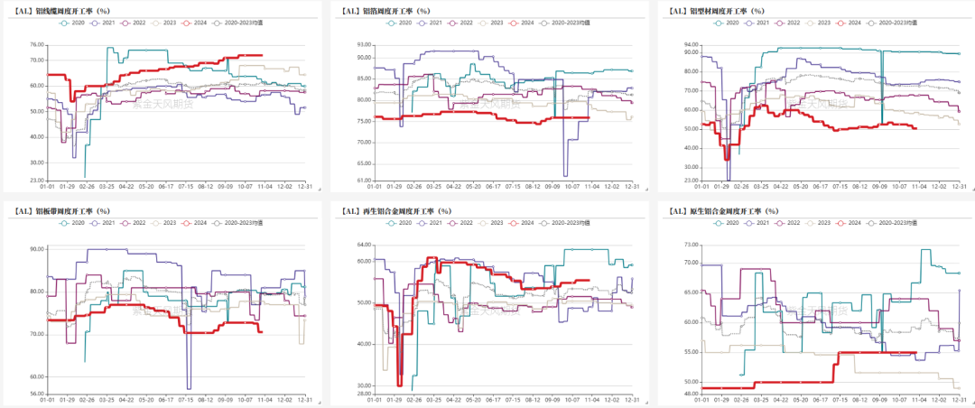铝型材开工率:偏空 铝型材企业周度开工率50.4%,较前一周下跌1.5%。