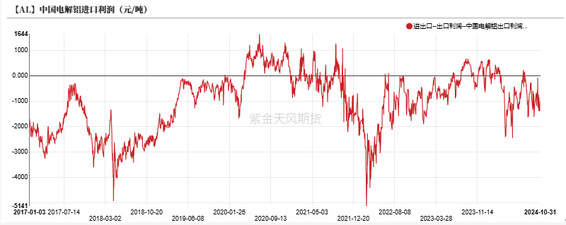 进口利润:偏多 上周电解铝进口盈亏为-1152元/吨,进口窗口保持关闭。
