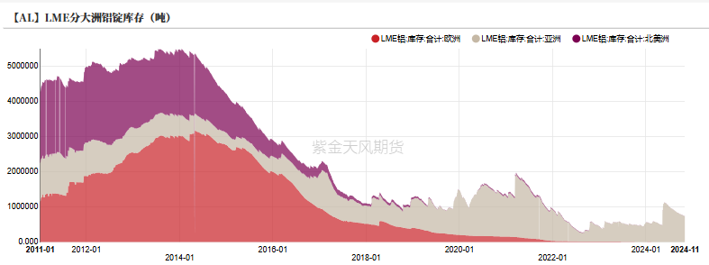 上周LME铝库存约为74.2万吨,较前一周减少1.25万吨。