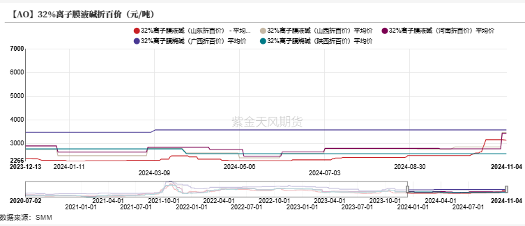 液碱价格方面各地价格波动较小,山东地区报价上涨至3194元/吨,河南地区价格为2800元/吨,山西地区价格为2780元/吨。