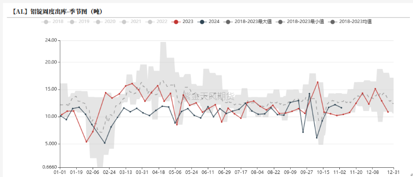 南北价差层面,目前南北价格进一步扩大,南方地区价格(5062元/吨)低于北方地区价格(5186元/吨),随着新疆地区电解铝厂冬季补库的开始,南北价差将或扩大。