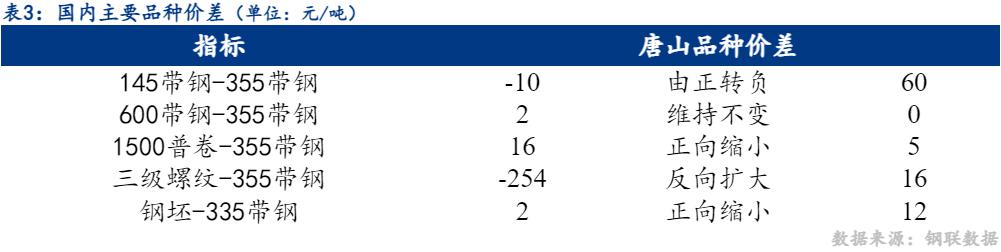 355mm带钢与钢坯市场价格价差正向缩小12元/吨,螺带差反向扩大16元/吨。