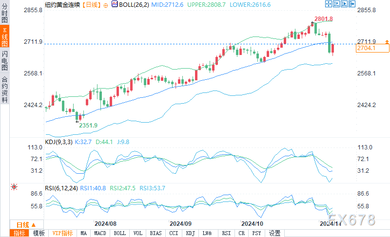 从技术上讲,COMEX12月黄金多头近期仍有整体技术优势,但已经消退。多头的下一个上行目标是在2,801.80美元的纪录高位上方收盘。空头的下一个近期下行目标是将期货价格推至10月低点2,618.80美元的坚实技术支撑下方。第一个阻力位见于2,700.00美元,然后是2,708.70美元。首个支撑位见于2,675.00美元,然后是今日低点2,650.30美元。