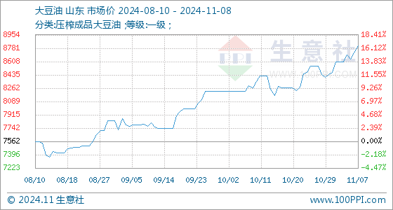 11月8日生意社大豆油基准价为8810.00元/吨