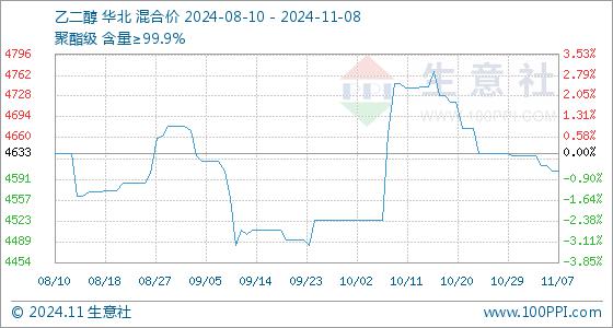 11月8日生意社乙二醇基准价为4605.00元/吨