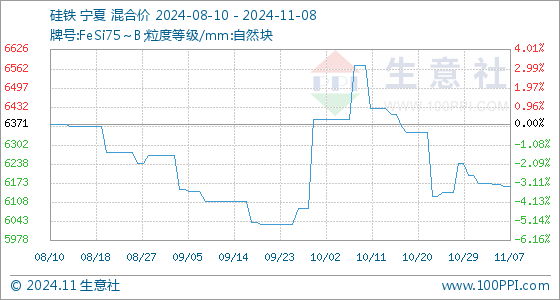 11月8日生意社硅铁基准价为6160.00元/吨