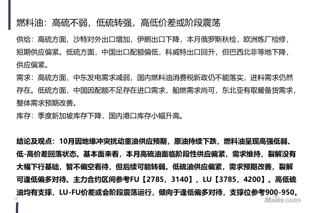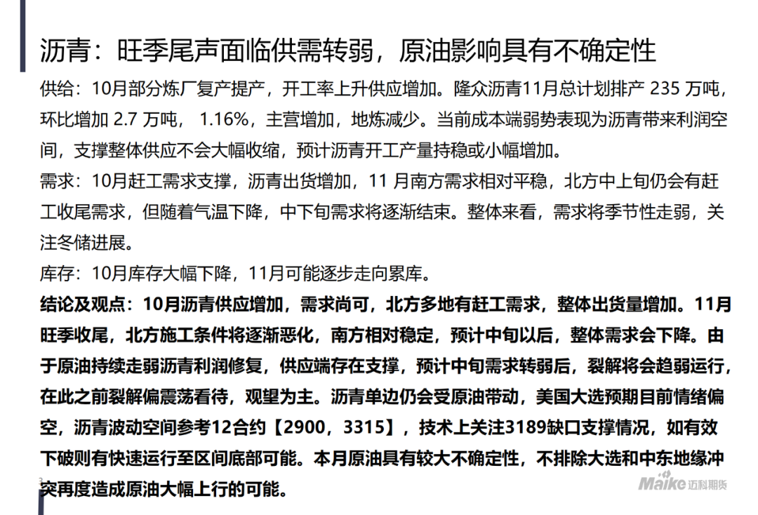 【迈科能源品月报】沥青面临旺季尾声供需转弱,高低硫油价差或阶段震荡