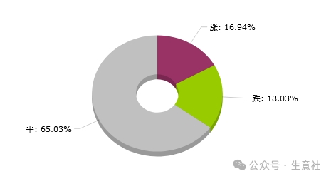 环比下降的商品共33种,集中在化工(共8种)和有色(共7种),跌幅前3的商品分别为硫酸铵(-3.58%)、铜(-1.73%)、钢坯(-1.26%)。