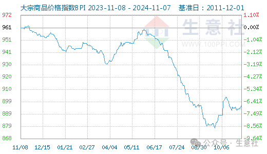 11月7日大宗商品价格指数BPI为896点,较昨日上升了133.28%35.76%