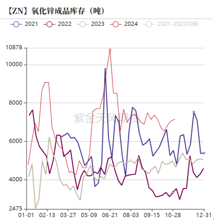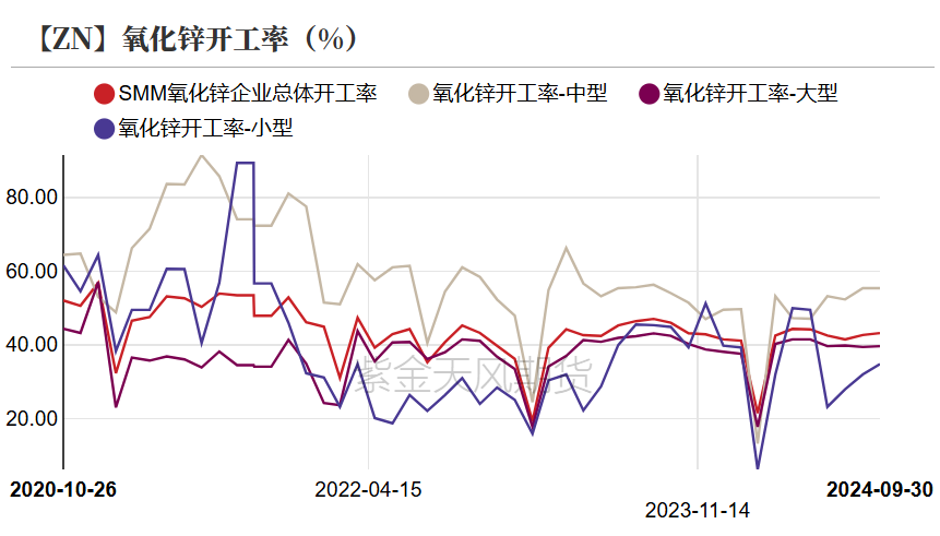 开工方面,河南多地天气预警再起,存在氧化锌企业受此影响暂时停产,周内氧化锌开工略有下滑,预计下周氧化锌开工维持震荡。