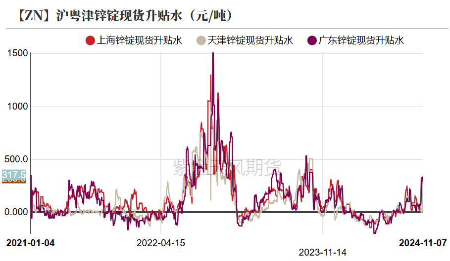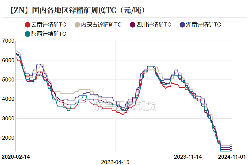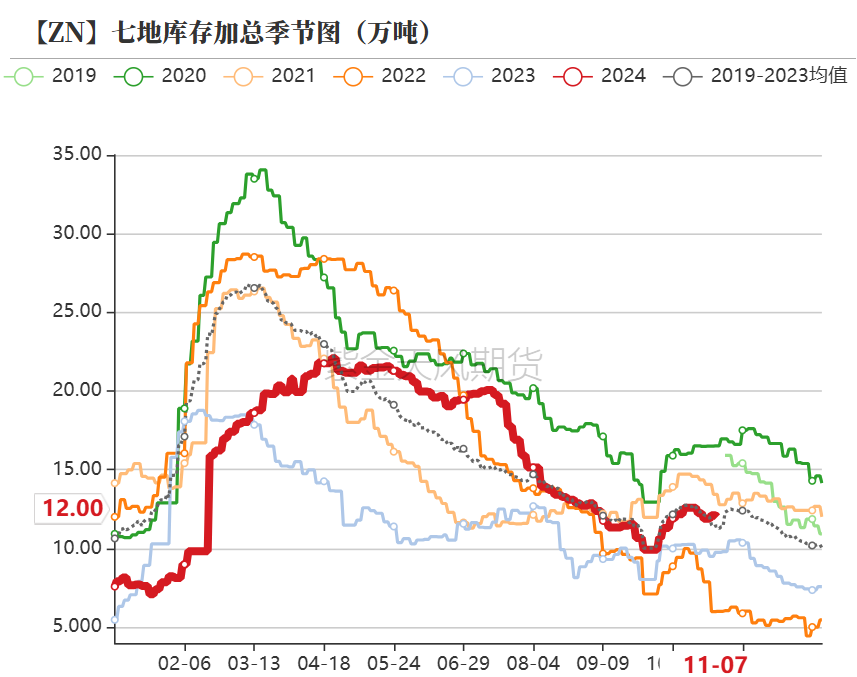 锌精矿远期虽有供应增量预期,同时近期市场流通量略有好转,但北方矿山面临季节性减产和冬储需求,加工费快速上涨受阻,从11月冶炼厂排产来看,驰宏、盛屯和白银等冶炼厂依然有减量预期,整体供应端延续低位。