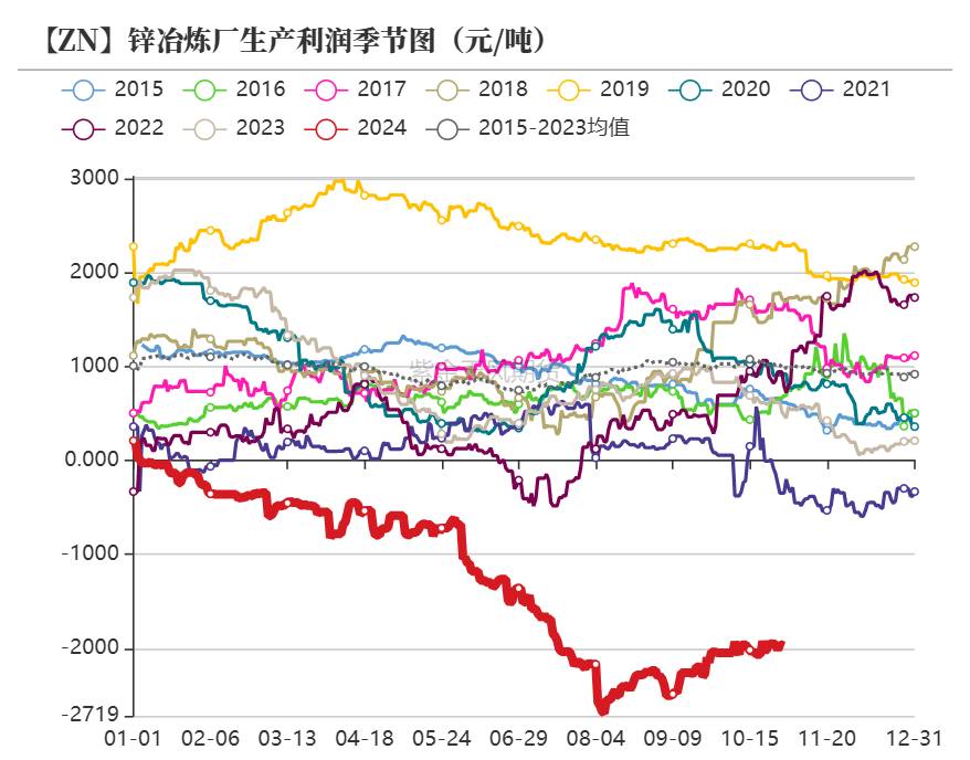 冶炼利润:偏多 周度国产环比上升至1500元/金属吨;周度进口TC维持-60美元/干吨。平均冶炼利润环比上行至-2000元/吨附近。