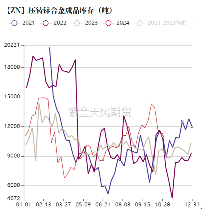 本周压铸锌合金开工率录得56.21%,较上周环比上升了1.01个百分点。原料库存方面,本周锌价仍居高位运行,下游企业采购主要以刚需采购为主,原料库存环比减少。