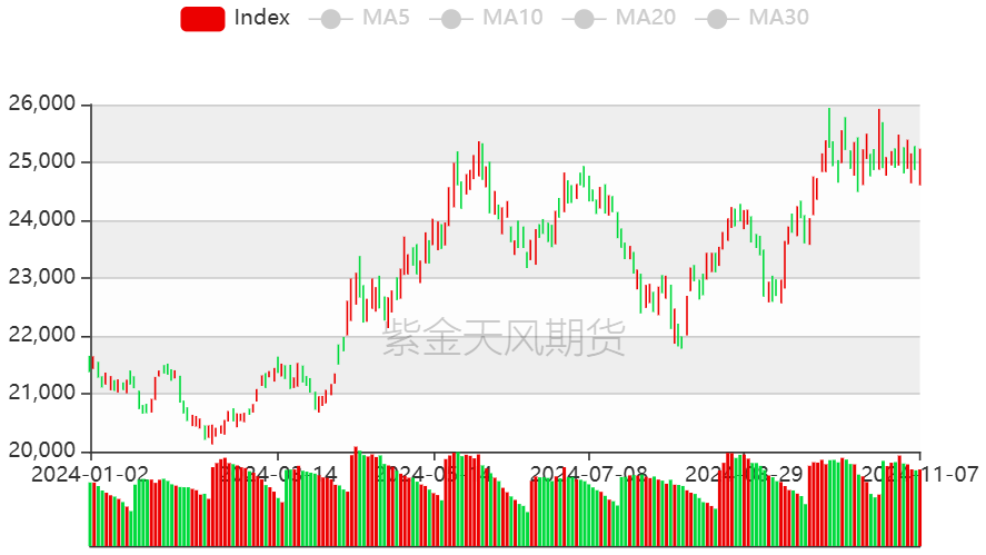 近期,宏观大选刺激品种波动显著走强,特朗普的对华主张或从市场风偏和外贸两个维度对人民币汇率构成压力,同时“高关税+减税”的组合政策或带动美国的通胀黏性,叠加全球地缘政治不确定性,预计美元指数或维持高位。