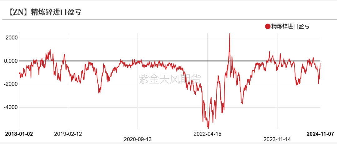 进口利润:偏多 进口窗口关闭,LME锌锭较沪锌现货亏损300元/吨,LME锌锭较沪锌2412期货亏损800元/吨。