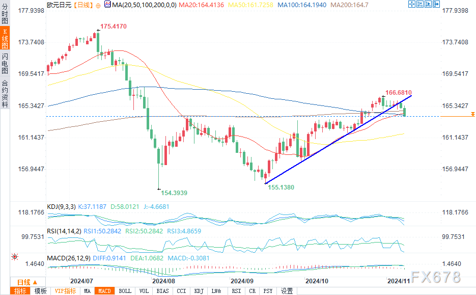 汇通财经APP讯——周五(11月8日)欧盘时段,欧元/日元、英镑/日元盘中双双下跌。两种货币对在技术图上都显示出看涨势头减弱,相对强弱指数和MACD指标显示出下行趋势。