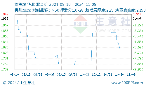 据生意社商品分析系统显示,炼焦煤本周市场价格呈现涨跌互现的局势。据生意社数据分析系统显示,截至到11月8日,炼焦煤市场均价为1718.33元/吨,较周初持平。