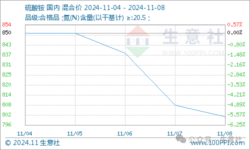 近期国内硫酸铵市场价格走跌。焦化企业开工率保持稳定,己内级开工率小幅提升。下游询单减少,需求方面减弱,多持谨慎态度。目前硫酸铵出口行情表现不佳,短期延续弱势运行。