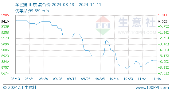 11月11日生意社苯乙烯基准价为8866.00元/吨