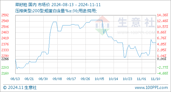 11月11日生意社菜籽粕基准价为2388.33元/吨