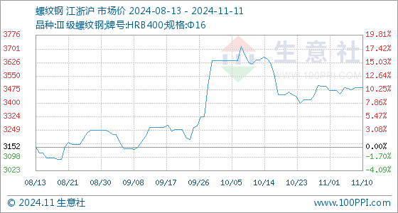 11月11日生意社螺纹钢基准价为3483.57元/吨