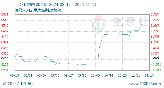 11月11日生意社LLDPE基准价为8550.00元/吨
