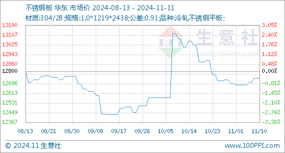 11月11日生意社不锈钢板基准价为12742.86元/吨