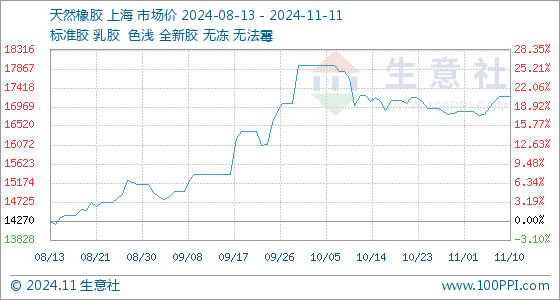 11月11日生意社天然橡胶基准价为17221.00元/吨