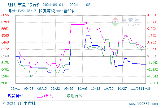11月5日金盛兰集团硅铁招标价格:湖北6530元/吨,数量300吨;江苏6550元/吨,数量100吨;广东云浮6730元/吨,数量400吨;广东河源6730元/吨,数量400吨;总量1200吨,均现金含税到厂。11月6日福建三钢硅铁招标价格6732元/吨,数量1100吨,半承兑半现金含税到厂。