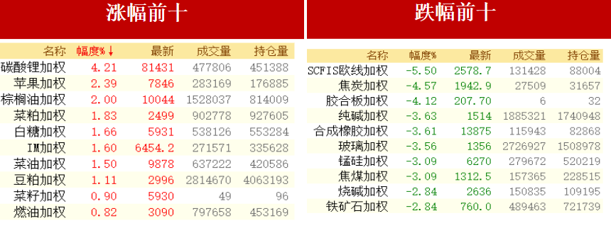 【每日收评】碳酸锂涨超4%焦炭跌超4%