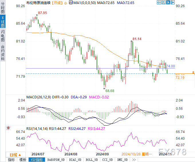 周一,油价同样表现疲弱。布伦特原油下跌1.55%,报72.81美元/桶;美原油连续合约跌1.62%,报69.24美元/桶。油价的下行受到美元走强和市场对全球需求放缓的担忧。近期油市投资者情绪转为谨慎,主要因中东局势趋于缓和、供应风险减弱,且需求端未出现明显提振。