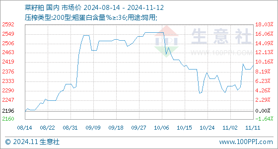 11月12日生意社菜籽粕基准价为2408.33元/吨