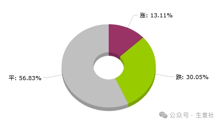 环比下降的商品共55种,集中在化工(共14种)和钢铁(共13种),跌幅前3的商品分别为铁矿石(澳)(-3.82%)、丁二烯(-3.10%)、WTI原油(-2.74%)。