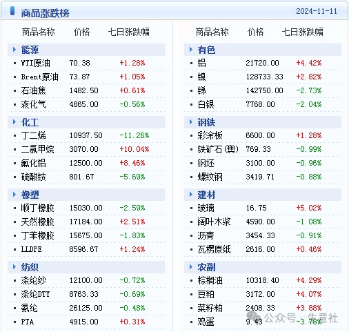 大宗商品数据每日题材(2024年11月12日)