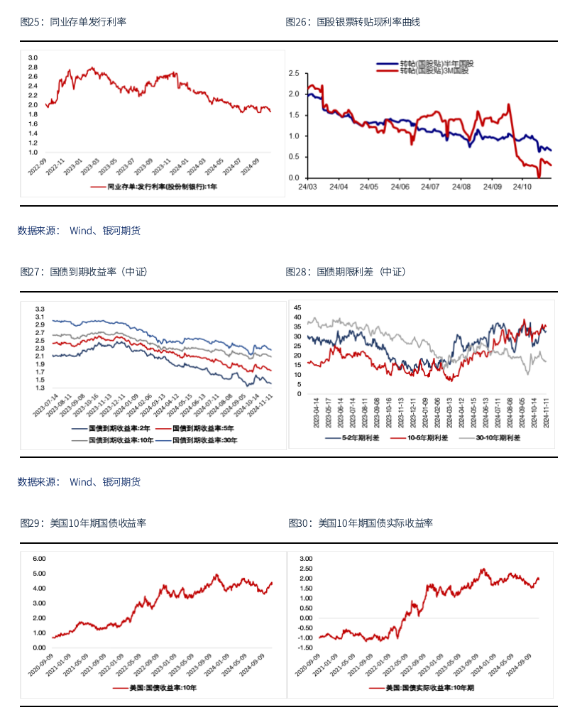 10月金融数据并非毫无亮点,但信贷总量和结构整体改善较为有限,数据公布后,长债收益率也小幅下行。短期来看,当前国内通胀低位徘徊,基本面角度债市走势仍难言反转。而化债氛围中,压低付息成本意味着低利率可能在一段时间内也将是常态。叠加当前货币政策更加强调支持性的立场,央行对市场资金面的呵护态度不变,债市面临的风险相对可控。不过,年底前2万亿增量地方政府专项债发行带来的债券供给压力尚存,预计债市做多赔率也相应受限。