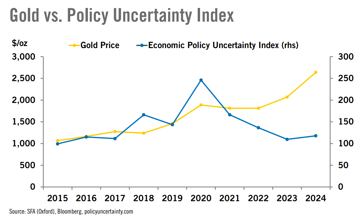 分析师指出,贵金属价格的下滑不仅仅与特朗普有关。自1976年以来,共和党政府的当选平均导致黄金价格在60天内下降4.5%,而民主党胜选则平均上升3.8%。他们表示,众议院的可能控制权以及参议院已确认由共和党掌控,增加了保守经济政策实施的可能性,降低了地缘政治方向的不确定性,但细节仍未明确。