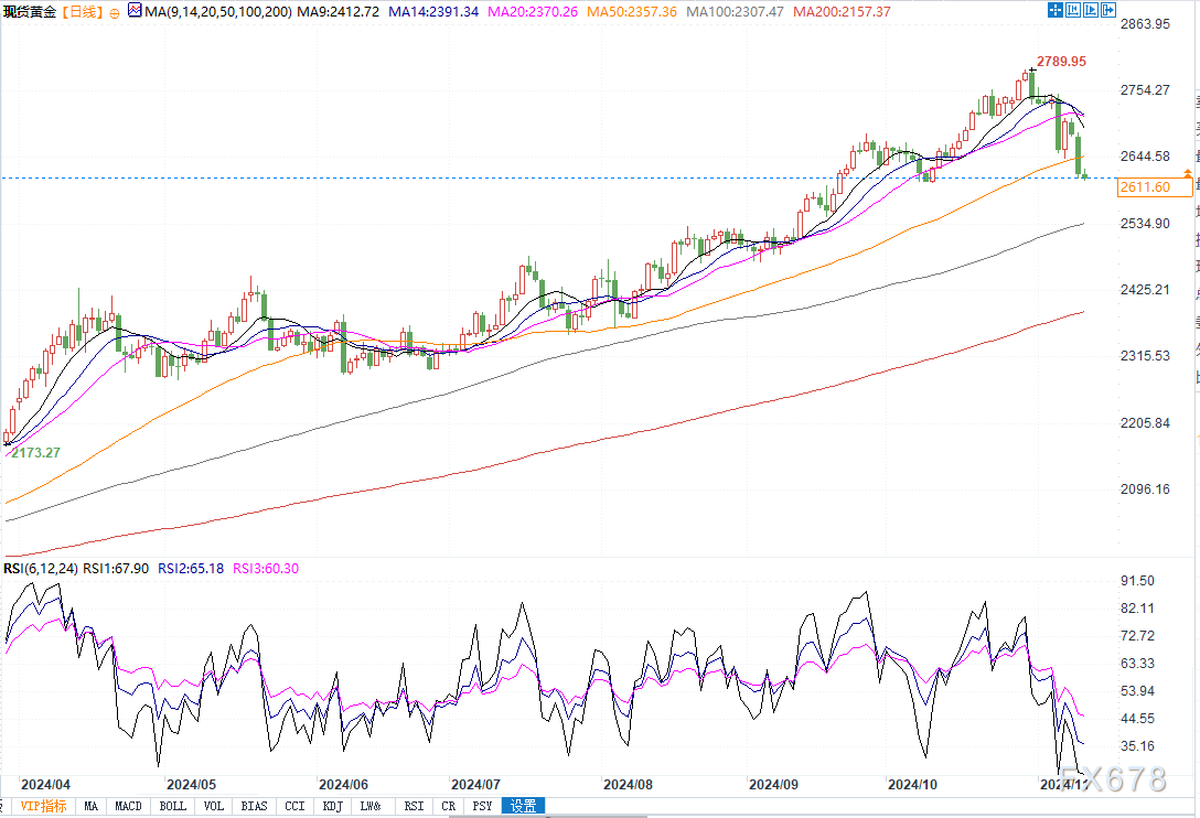 北京时间11月12日14:00,现货黄金报2609.17美元/盎司