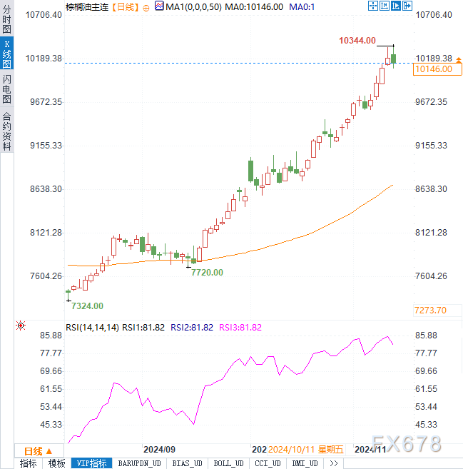不过,棕榈油库存下降仍可能在中期为市场提供一定支撑。一旦市场消化了当前的高价压力,价格可能会在后续的库存调整或供应减少背景下出现温和反弹。因此,交易者在高位波动中应当关注出口动态和国际市场对马来西亚棕榈油的需求变化。