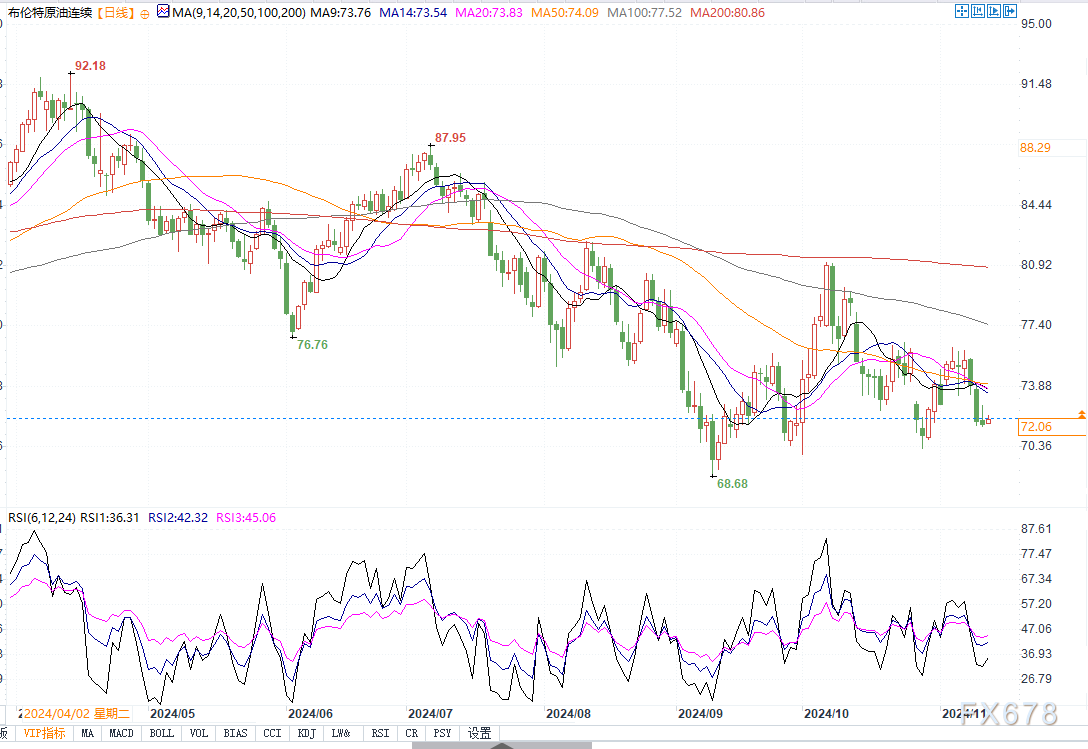 北京时间11月13日13:40,布伦特原油价格报72.04美元/桶