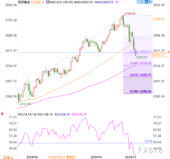 根据芝商所的FedWatch工具显示,交易员认为美联储在12月会议上降息25个基点的概率为62%,而一周前为77.3%。Wong预测,如果即将公布的美国消费者物价指数(CPI)数据显示通胀趋势得到遏制,金价可能会测试2650美元。
