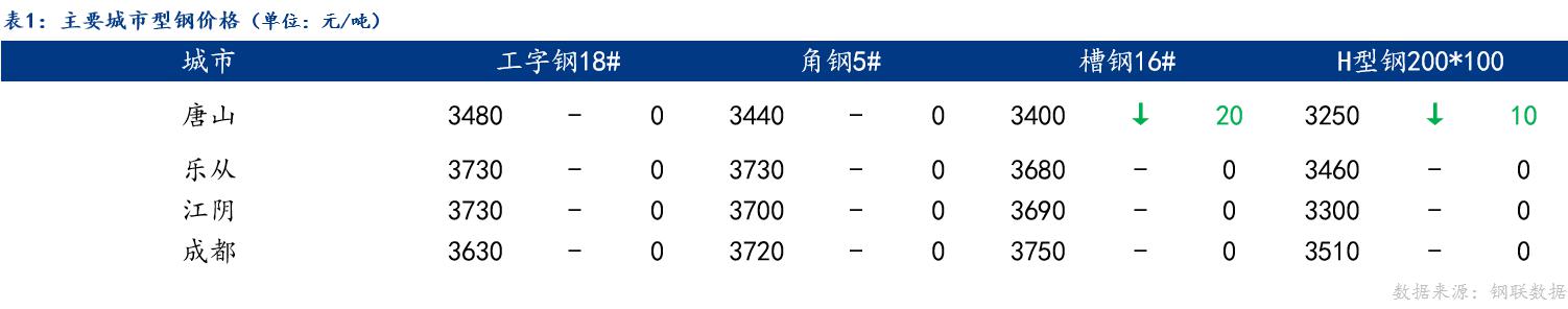 今日型钢价格稳中趋弱运行,唐山槽钢H型钢价格较上一交易日下跌10-20元/吨。