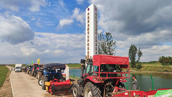 丰收在即,和晟高油酸花生种植基地现场,机器整装待发