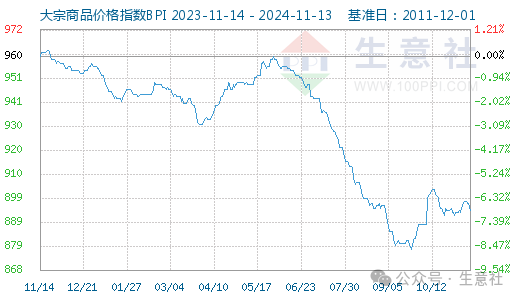 11月13日大宗商品价格指数BPI为894点,较昨日下降了3