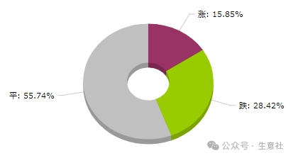 环比下降的商品共52种,集中在化工(共15种)和有色(共13种),跌幅前3的商品分别为棕榈油(-3.96%)、大豆油(-3.45%)、锡(-3.33%)。