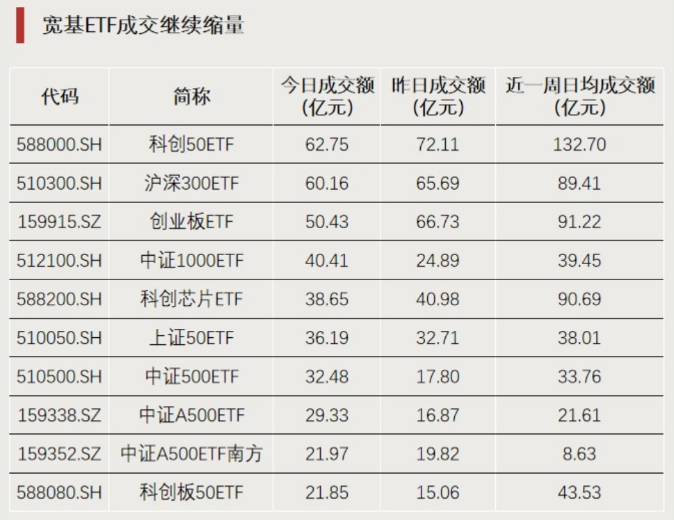 A股ETF方面,成交额与昨天基本持平,不过,多只科创板、创业板ETF、沪深300ETF成交进一步缩量,中证A500ETF则普遍放量。科创板相关ETF则出现分化。