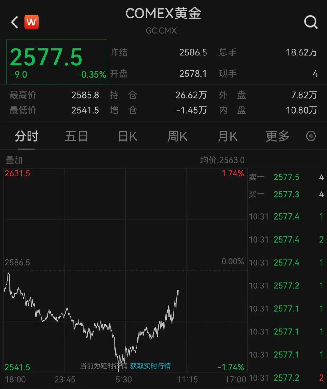 此外,11月14日,国际黄金价格继续回落,伦敦金现一度跌破2540美元/盎司,触及近两个月来低位。COMEX黄金则一度跌至2541.5美元/盎司。