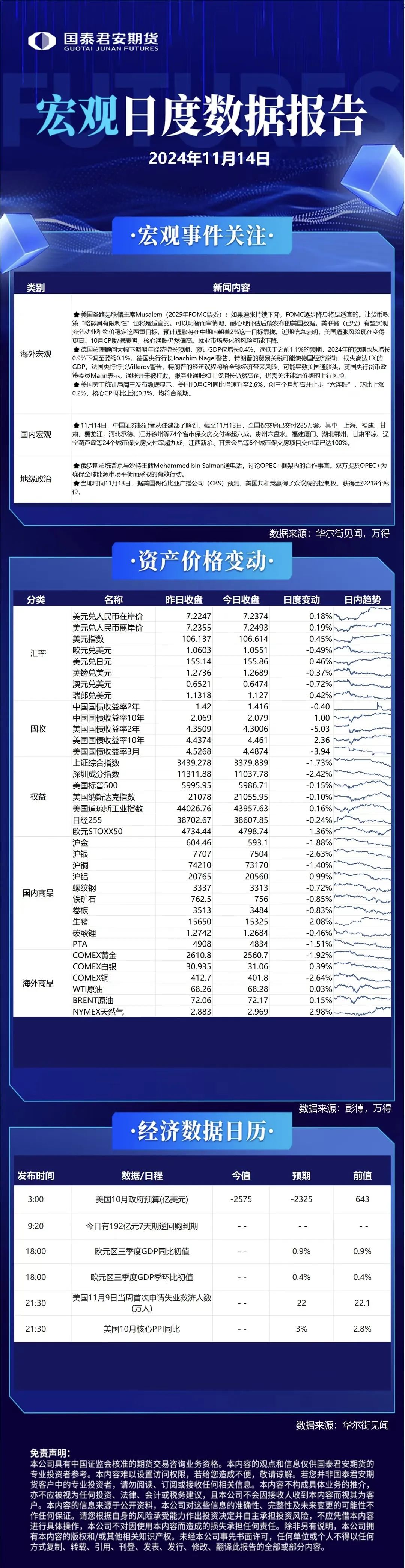 观点分享:当地时间11月14日,在美国达拉斯联储参与主办的同当地企业领袖对话中,鲍威尔表示:经济没有发出任何需要我们急于降息的信号。我们目前看到的经济强劲,让我们有能力谨慎地做出决定。这是美国大选特朗普获胜、共和党拿下国会两院之后,美联储主席鲍威尔首度发声。这说明联储有时间先了解评估未来特朗普出台政策的经济影响,再作出反应。鲍威尔表态后,市场之前降息路径的预期发生一定变化,对利率前景敏感的两年期美国国债收益率短线上扬3个基点,逼近4.32%,美股尾盘一度上测4.37%。