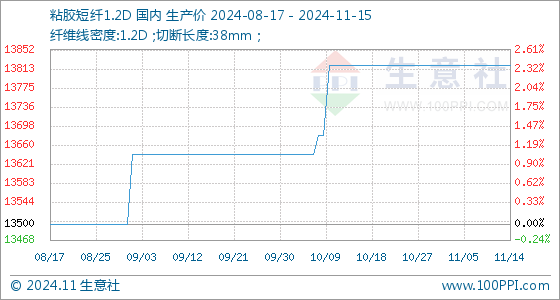 11月15日生意社粘胶短纤1.2D基准价为13820.00元/吨