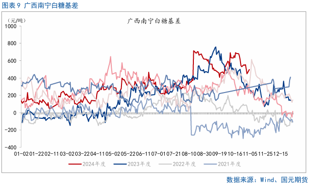 国内供需格局:偏空。1)云南新糖上市销售,报价下调。2)广西2024/25榨季增产80万吨基本已定。